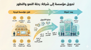 النتيجة أولاً النتيجة أولاً: يتم تحويل المؤسسة الفردية إلى شركة (ذات مسؤولية محدودة غالباً) إلكترونياً عبر منصة “المركز السعودي للأعمال”، ويتطلب ذلك إعداد بيان مالي للمركز المالي للمؤسسة، وصياغة عقد تأسيس للشركة الجديدة، وسداد الرسوم المقررة، لتنتقل بعدها كافة أصول والتزامات المؤسسة إلى الكيان الجديد مع حماية الذمة المالية الشخصية للمالك. 📌 المفهوم القانوني للتحول … إقرأ المزيد